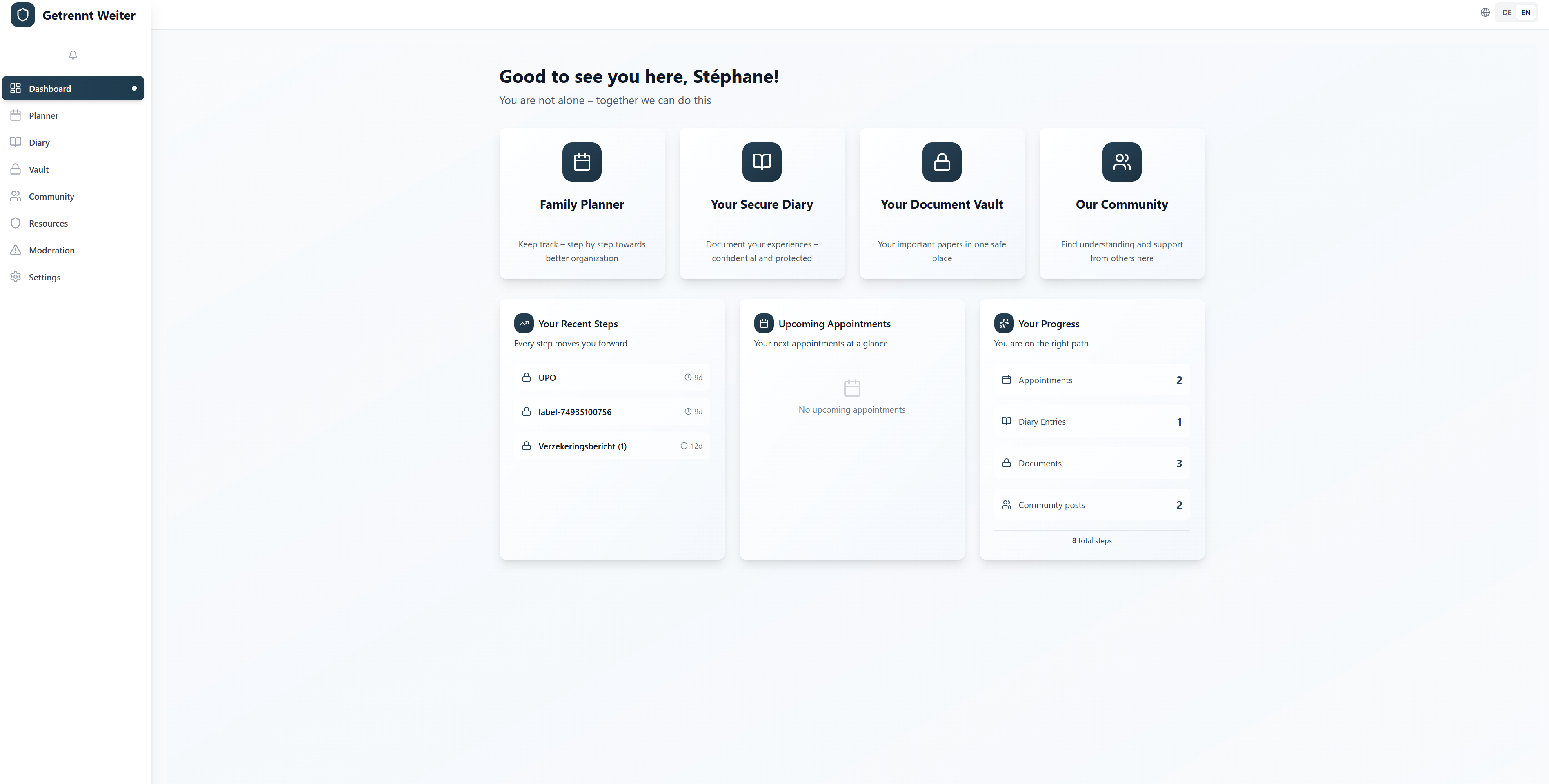 Co-parenting support platform for separated parents in Germany with secure tools and community
